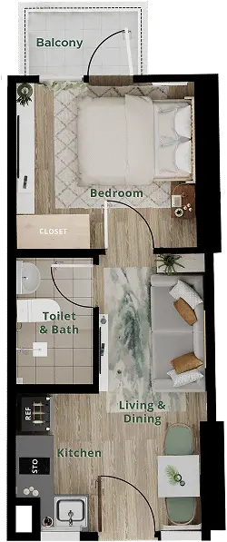 Each unit is spacious and has large, ample cuts to accommodate your personal pursuits, allowing you to convert your unit easily into a working area, a study room, or even your indoor gym whenever you need it to be.